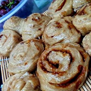 发酵后再细揉面团成片状,撒上花生碎或者腰果碎,再撒少许红糖碎,这样更有层次和口感,卷成长条后切成小段备用