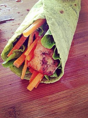 把所有东西放在皮上,淋上酸奶油酱汁,卷起来。