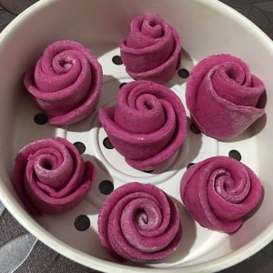 火龙果馒头,火龙果玫瑰花馒头,成型完成,开始二次发酵,等待上锅。