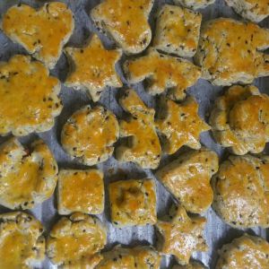 揉成一个小团,用模具做出型状,最后涂上蛋黄液,放进烤箱,165度,20分钟。
