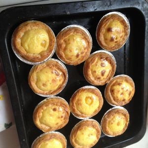 所有蛋挞液材料混合一起最少过筛三遍,每个倒入七分满、220度、25分钟