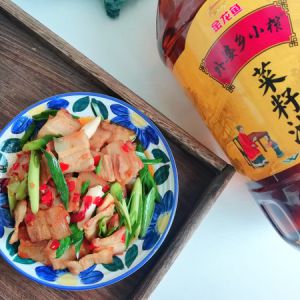 锅中倒入金龙鱼外婆乡小榨菜籽油