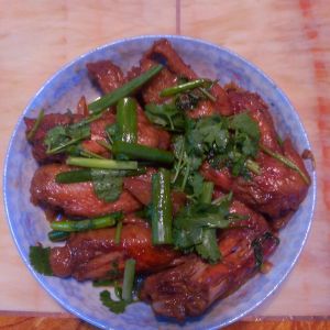 汁快收完的时候放鸡精,盛出放香菜上桌