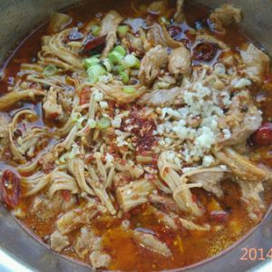 起锅热油,6分热,先放蒜沫炒出蒜香味后放花椒,辣椒,炒香,再放豆瓣酱,炒出红油后放料酒2匙,海鲜酱油2匙,炒香后放适量的水,根据肉的多少自己掌握水量。