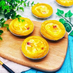 过筛的蛋奶液倒到蛋挞皮上,八分满。