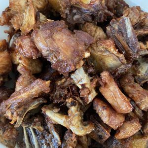 鸡块腌半小时后入油锅炸,需复炸一遍(喜欢干一点的就多炸一会);