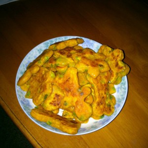 将压好的南瓜饼放入平底锅中煎熟,火一定要小哦,不然很容易煎焦!