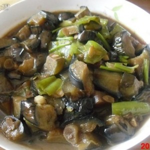 把茄子和柿子椒下锅炒软后,放入酱油,盐,糖~