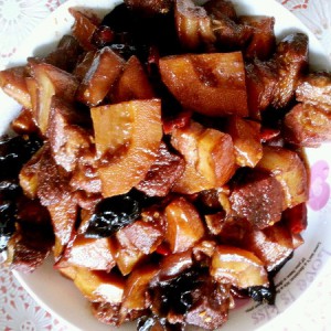 五花肉焯水后切块备用,春笋切块焯水后备用。