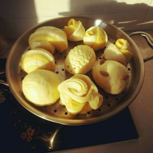 大火蒸,视馒头花卷个头大小,开锅后七八分钟。不要开盖,再闷3分钟。