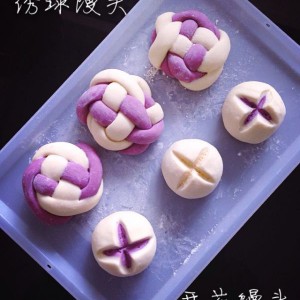 还有开花馒头!就是把白面团压成饼里面包一团紫薯,然后用刀划一个十字口子,放旁边醒10分钟;