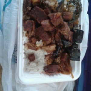 五花肉倒入锅中翻炒,到料酒,老抽,白糖,添少许水,小火慢炖50分钟
