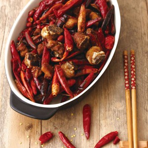 另起一炒锅倒入油,待油热后加葱、姜、蒜、干辣椒及花椒煸炒出香味。