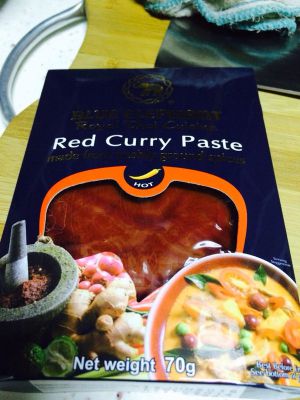这个是泰国的红咖喱,淘宝有卖19.9¥,你们可以自己去找。这个咖喱的味道和一般的黄咖喱味道不一样,突出了青柠檬和柠檬草的香味。