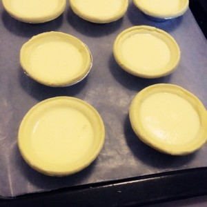 倒入蛋挞胚,烤箱200度预热上下火烤25分钟即可。