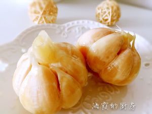 用盐水浸泡过两天之后的蒜,头朝下控干水分。记得一定充分的控干水分。我控了一天。