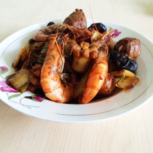 锅内放油加热倒入鲜虾,别忘了先把虾线抽掉。