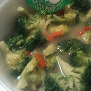 加入西兰花和胡萝卜丁略煮片刻即可。