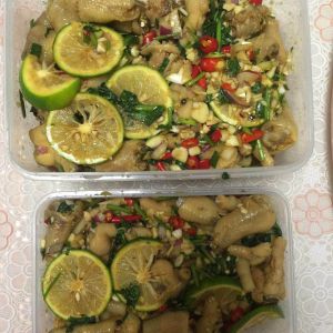 放入盆中、放生抽、盐、味精、白糖、香油少量 搅拌。