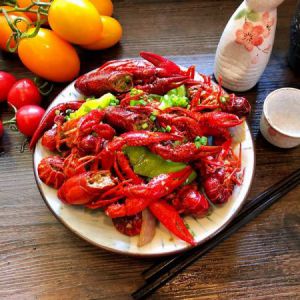 加入生抽五香粉八角黑白胡椒,再加一勺盐,半勺糖,半勺鸡精。翻炒八分钟。小龙虾会出水,不用另外加水也不会炒干。