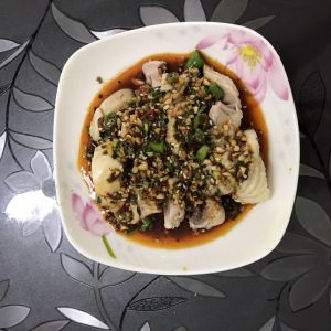 蒜末,葱末,油辣子,辣椒圈,芝麻,生抽,耗油香油,花椒油放入碗中