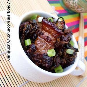 首先将梅干菜用温水提前一个小时泡上,泡好以后用水多冲洗即便,洗净残留的泥沙。