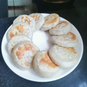 面擀的像饺子皮那样的薄皮,加多多的馅包成包子的样子,压扁,平底锅放油,下肉饼煎成两面金黄。