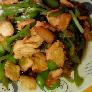 锅里放油,放入肥肉,小火炒,放少量盐,炒到有点焦,肥肉上的油都炒出来了就放瘦肉,姜片,大火翻炒,多翻炒一会比较香,放适量酱油,翻炒,倒入青椒丝,翻炒,放适量盐,快熟的时候放入葱段,在翻炒一下就ok了