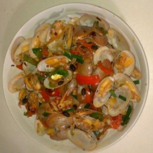 小贴士:1.炒辣酱时用中火翻炒避免粘锅 2.炒花蛤一定要用大火,而且花蛤会出水,千万不要向锅中加水。3.一定要将花蛤口全部炒开,如若怕炒久了会影响口感,可以将锅盖盖上焖一会儿,这样花蛤会迅速开口的。