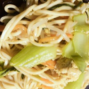 调好了味以后就可以把面条放进锅里啦,炒均匀了就可以出锅啦。
