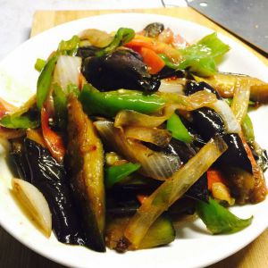 会发现越炒越干,这是因为水份又被茄子吸收了,同时味道也被吸收了,加入一些水,继续翻炒。直到茄子不再硬,很软了。就可以最后加入一些鸡精,翻炒一会就可以出锅了。