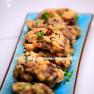 把腌好的排骨逐一沾一层薄薄的面包糠。