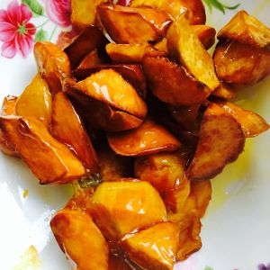 我是用水熬的糖,水少放一点点就可以,糖熬成黄色在放入地瓜