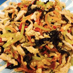 (依然没图)在炒出红油之后把切丝的料都放入锅中炒熟,加入葱和调好的汁儿!
