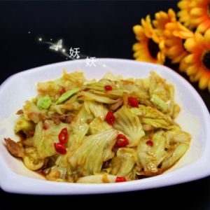 把蒜蓉姜,小米辣倒进来继续大火快炒,包菜断生后加少许料酒生抽,适量盐和蚝油调味均匀就可以了,这道菜没有提前爆香姜蒜,后入法蒜蓉的辣香味更浓郁,蚝油的量不宜过多,因为蚝油本身就是咸的