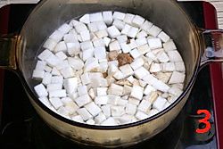将切好丁的杏鲍菇丁焯水捞出待用。