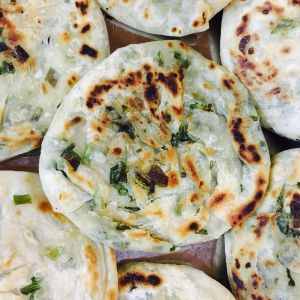 新鲜出锅的又香又酥又脆的猪油葱油饼