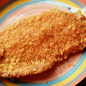 油热到七分热,可以把鸡排下锅,小火慢炸