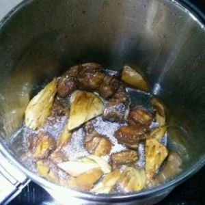 拌均匀将切好的莲藕块加入,搅拌均匀上锅盖开大火烧开,上汽后转小火煮15分钟