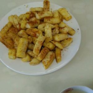 煎到酥脆,关火,加入辣椒粉,孜然粉,我又加了一点麻辣鲜