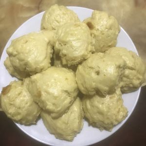 将面粉、赤砂糖、泡打粉一起倒盆里,加入温开水,锅里水烧开,将和好的面团放在隔层里,上锅蒸15分钟。我水加多了,家里面粉刚好没有,和得有点粘,不过也不影响它发酵。
