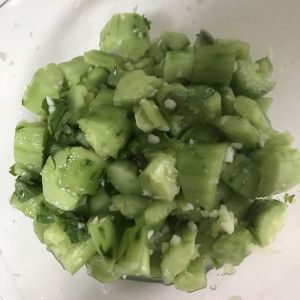 黄瓜放入碗中,根据喜好决定是否加香菜。