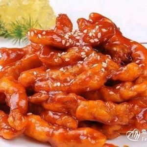 锅里留底油烧热,倒入糖醋汁煮至起大泡,下肉条翻炒均匀即可。