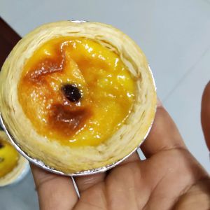 这个是烤好的培根蛋挞。甜而不腻,酥脆可口醇香哦!