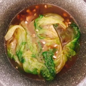 锅中烧油煸炒蒜末,倒入料汁,加入生菜