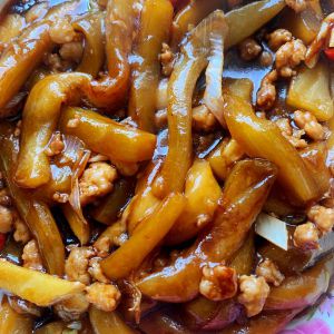 碗汁:两勺生抽、半勺老抽、一勺蚝油、一勺醋、一勺糖、少许盐、一勺淀粉、一碗清水搅拌均匀;
