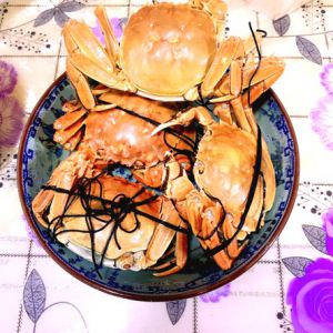 将螃蟹肚子朝上,在上面可以再来一片姜片。盖上锅盖开始蒸,大火五六分钟后转小火。小螃蟹蒸个十分钟,大螃蟹蒸十五分钟