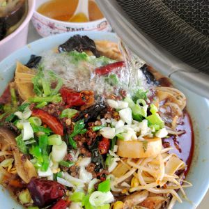 煮豆芽,蘑菇,干豆腐。煮的顺序随意,我是弄的太多了,锅里放不下,煮一会就得捞出来,如果锅里能放下的话,建议按耐煮程度下锅。
