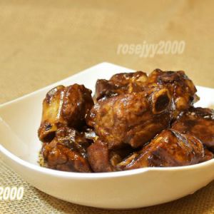 排骨块头较大加水约材料的一半深,加入红烧酱汁,搅拌几下,小火,盖盖子焖约7~8分钟;