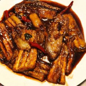 不粘锅倒油煎茄子段,正反面煎成金黄色后倒入葱蒜和调好的汁,收收汁,出锅后洒些熟芝麻,齐活!开吃!